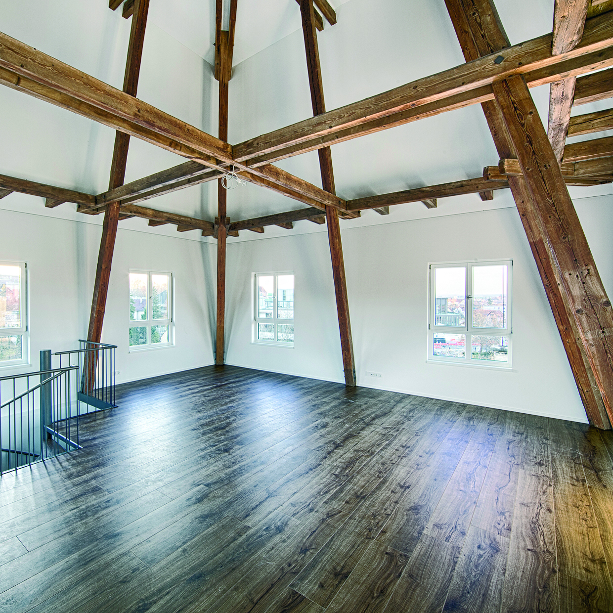 Nach der Aufgabe durch die Stadt wurde das Gebäude an die Dr. Rall GmbH & Co. KG verkauft. Das Planungskonzept musste die gegensätzlichen Anforderungen der denkmalgerechten Sanierung, der bedarfsgerechten Funktionalität und der wirtschaftlichen Angemessenheit miteinander vereinen. Daher wurden denkmalgeschützte Teilbereiche wie die Fassadenbögen der Risalite, die Turmwohnung und der Turmhelm sorgfältig saniert. Andererseits wurden die baulichen Eingriffe in das Tragwerk, die bereits in den 1970er Jahren vorgenommen worden waren, im Umbau berücksichtigt.